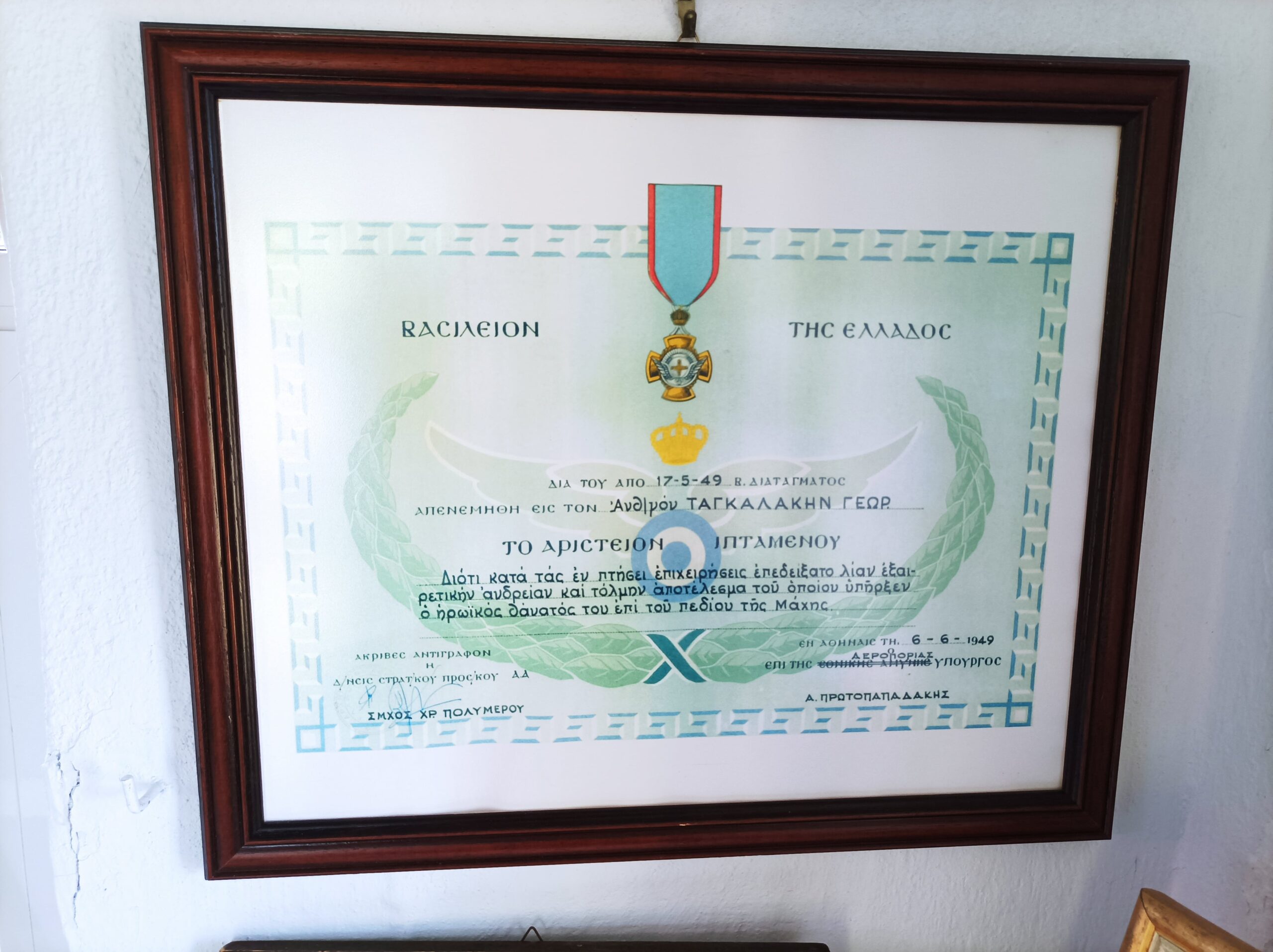 Ξεχωριστή, όπως κάθε χρόνο, ήταν αυτή τη φορά, η παρουσία της μιας αδελφής του Γεωργίου Ταγκαλάκη, Ασπασίας, καθώς η άλλη αδελφή, Γιούλα, έφυγε από τη ζωή πριν ένα χρόνο. Με τη φροντίδα των δύο αδελφών χτίστηκε το εξωκλήσι του Αγ. Γεωργίου καθώς και το μνημείο. Με το χαμόγελο στα χείλη και τη ζωντάνια εφήβου η κ. Ασπασία Ταγκαλάκη παρέθεσε τον καφέ και έδωσε την ψυχή της φροντίζοντας τους παρευρισκόμενους. Με ιδιαίτερη αξία και σημασία η ευχή της, όπως είναι αποτυπωμένη και στο μνημείο.