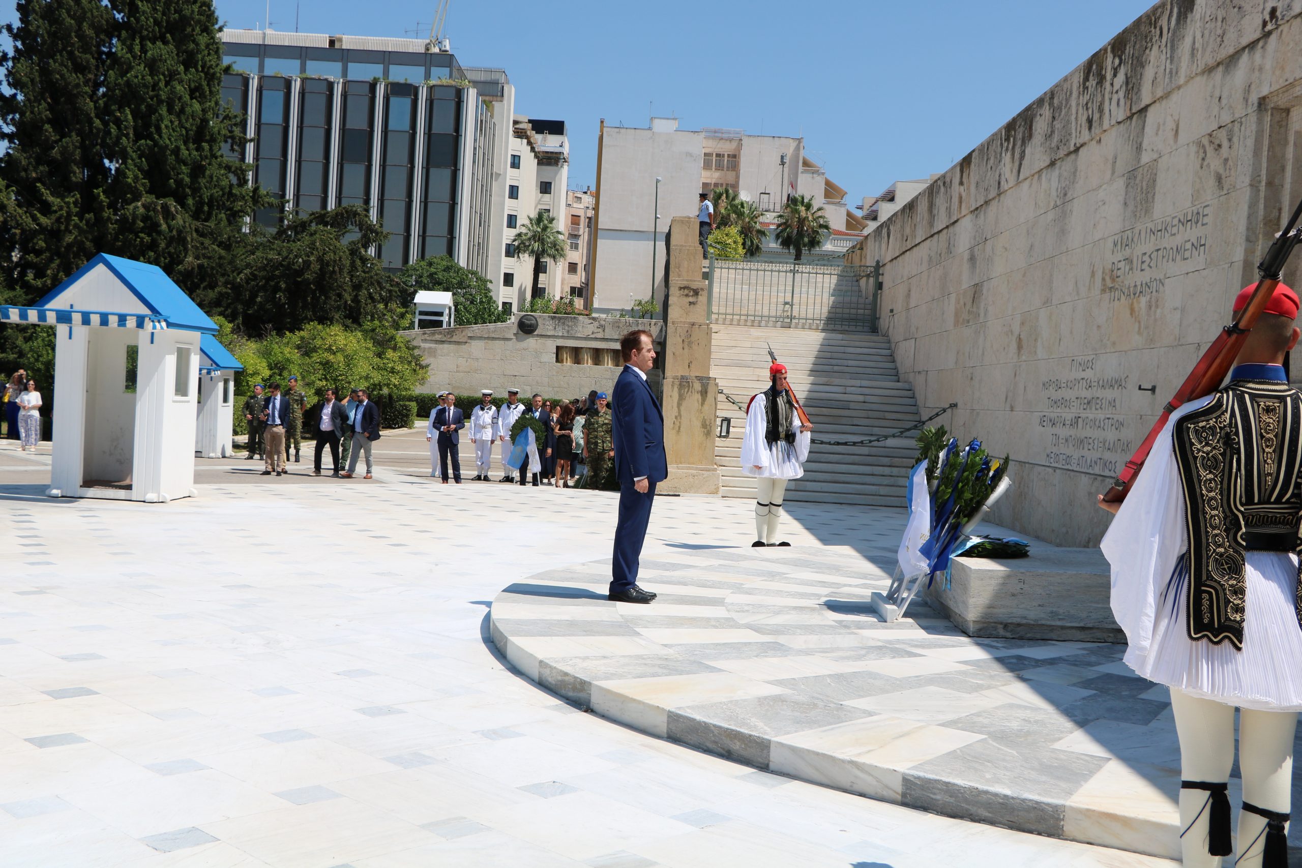 Σύμφωνα με το πρόγραμμα, την 11:00 ώρα, τελέστηκε Επιµνηµόσυνη Δέηση στον Καθεδρικό Ναό των Αθηνών και την 11:40 ώρα, Κατάθεση Στεφάνων στο Μνηµείο του Άγνωστου Στρατιώτη.