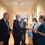 Στη συνέχεια επισκέφθηκαν τους ασθενείς  στους θαλάμους όπου μαζί με τις ευχές για Καλό Πάσχα και ένα συμβολικό δωρο τους  ευχήθηκαν .γρήγορη ανάρρωση