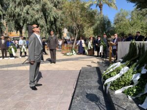 Ακολούθησε τελετή στο άγαλμα του Άγνωστου Στρατιώτη όπου τελέστηκε επιμνημόσυνη δέηση από τον Σεβασμιότατο Αρχιεπίσκοπο Κρήτης κ.κ. Ευγένιο Βˊ και κατάθεση στεφάνων από τον εκπρόσωπο του Προέδρου της Βουλής βουλευτή Μάξιμο Σενετάκη, τον εκπρόσωπο της Κυβέρνησης Γενικό Γραμματέα Πρωτοβάθμιας, Δευτεροβάθμιας Εκπαίδευσης και Ειδικής Αγωγής Ιωάννη Παπαδομαρκάκη, τον Βουλευτή ΣΥΡΙΖΑ Ηρακλείου Χάρη Μαμουλάκη, τον ανεξάρτητο βουλευτή Ηρακλείου Μιχάλη Γαυγιωτάκη, τον Περιφερειάρχη Κρήτης Σταύρο Αρναουτάκη, τον Δήμαρχο Ηρακλείου Αλέξη Καλοκαιρινό, την Γραμματέα της Αποκεντρωμένης Διοίκησης Κρήτης Μαρία Κοζυράκη, τον Ανώτερο Διοικητή Φρουράς Ηρακλείου Ταξίαρχο Θεόδωρο Δρακόπουλο, ως εκπρόσωπος των Ενόπλων Δυνάμεων και των Σωμάτων Ασφαλείας, οι εκπρόσωποι των Αποστράτων Αξιωματικών και Σωμάτων Ασφαλείας των Εφέδρων Αξιωματικών, εκπροσώπους φορέων, αντιστασιακών οργανώσεων και θυμάτων πολέμου.