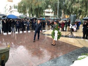 Στεφάνια κατέθεσαν, ο εκπρόσωπος της Κυβέρνησης ο Υφυπουργός Εσωτερικών, Βασίλης -Πέτρος Σπανάκης, οι Βουλευτές Ηρακλείου Μάξιμος Σενετάκης, Κωνσταντίνος Κεφαλογιάννης, Ελένη Βατσινά, ο Περιφερειάρχης Κρήτης Σταύρος Αρναουτάκης, ο Δήμαρχος Ηρακλείου Αλέξης Καλοκαιρινός, η Συντονίστρια της Αποκεντρωμένης Διοίκησης Κρήτης Μαρία Κοζυράκη. Επίσης παρουσία του Αντιπεριφερειάρχη Ηρακλείου Νίκου Συριγωνάκη, του Προέδρου του Περιφερειακού Συμβουλίου Ευάγγελου Ζάχαρη, των Αντιπεριφερειαρχών Ελένης Μαράκη-Μπελαδάκη, Νίκου Σκουλά, στεφάνια κατέθεσαν: ο Ανώτερος Διοικητής Φρουράς Ηρακλείου, Ταξίαρχος Φώτιος Αρμπής, Πρυτανικές Αρχές, φορείς, εκπρόσωποι κοινοβουλευτικών κομμάτων, Ενώσεων Αποστράτων Ενόπλων Δυνάμεων, Αναπήρων Θυμάτων Πολέμου, φορέων κ.α. Επίσης παραβρεθήκαν ο Διοικητής της 133ΣΜ Σμήναρχος (Ι) Ιωάννης Σαράντος και ο Διοικητής της 11ης ΜΚΒ Σμήναρχος (ΕΑ) Εμμανουήλ Μανασσάκης.