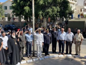 Στεφάνια κατέθεσαν, οι βουλευτές Ηρακλείου, Ελευθέριος Αυγενάκης, Μάξιμος Σενετάκης, Ελένη Βατσινά, Φραγκίσκος Παρασύρης, Χάρης Μαμουλάκης, ο Αντιπεριφερειάρχης Ηρακλείου Νίκος Συριγωνάκης, ο Δήμαρχος Ηρακλείου Αλέξης Καλοκαιρινός, ο Ανώτερος Διοικητής Φρουράς Ηρακλείου Ταξίαρχος Θεόδωρος Δρακόπουλος ως εκπρόσωπο των Ενόπλων Δυνάμεων, εκπροσώπους των Σωμάτων Ασφαλείας, Ενώσεων Αποστράτων Ενόπλων Δυνάμεων, των κομμάτων, του ΕΚΗ, των Εφέδρων Αξιωματικών, των προσφυγικών σωματείων, Μικρασιατικών συλλόγων, Θρακιωτών, Ποντίων, Αρμενίων, Προσκόπων κ.α..