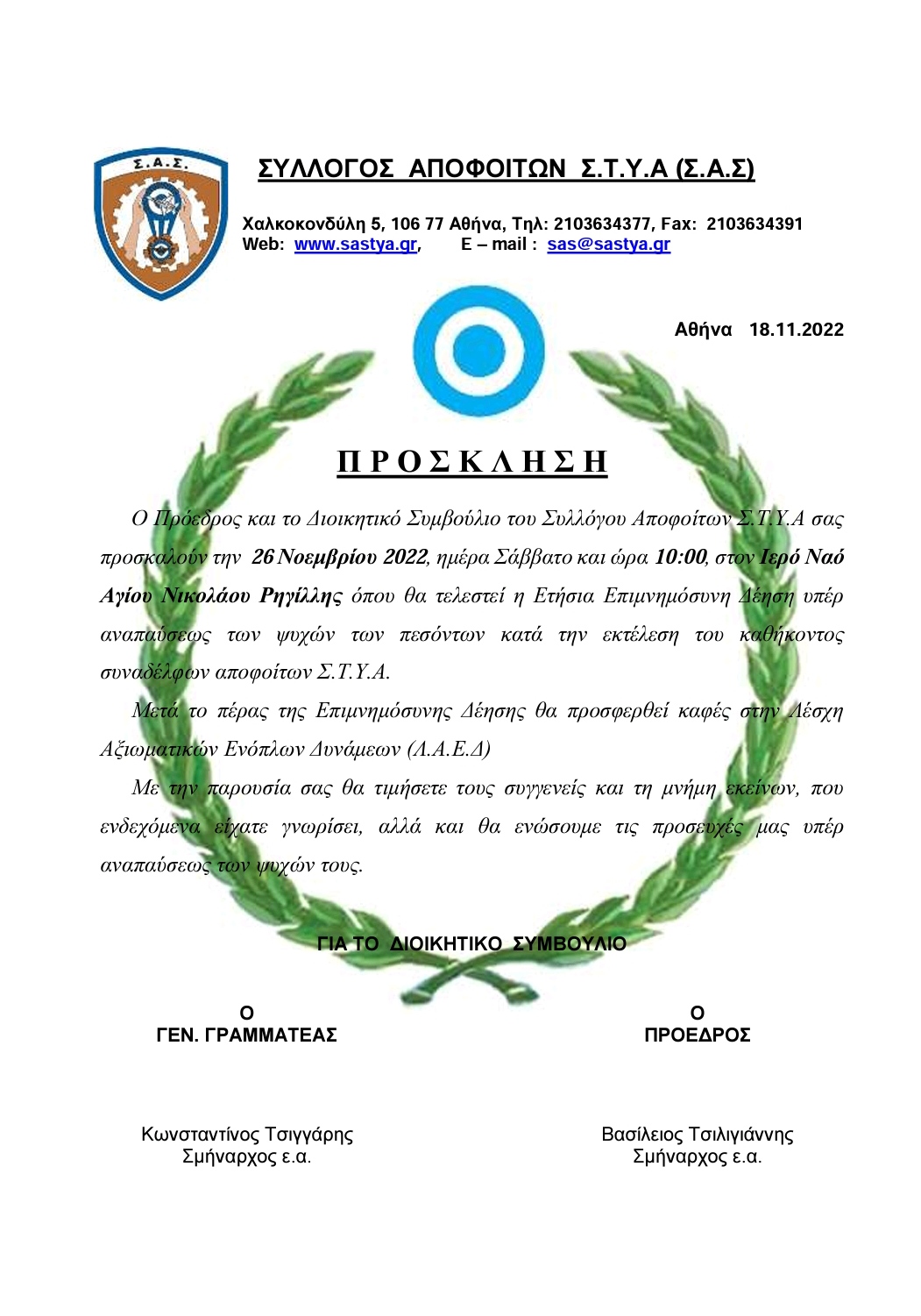 Αθήνα : 23 Νοεμβρίου 2022 Αριθμ. Πρωτ.:256   ΠΡΟΣ:- ΥΠΟΥΡΓΟ ΕΡΓΑΣΙΑΣ & ΚΟΙΝΩΝΙΚΩΝ ΥΠΟΘΕΣΕΩΝ κ. Κωστή Χατζηδάκη – ΥΦΥΠΟΥΡΓΟ ΓΙΑ ΘΕΜΑΤΑ ΚΟΙΝΩΝΙΚΗΣ ΑΣΦΑΛΙΣΗΣ κ. Παναγιώτη Τσακλόγλου – ΠΡΟΕΔΡΟ ΕΠΙΤΡΟΠΗΣ ΚΟΙΝΟΝΙΚΩΝ