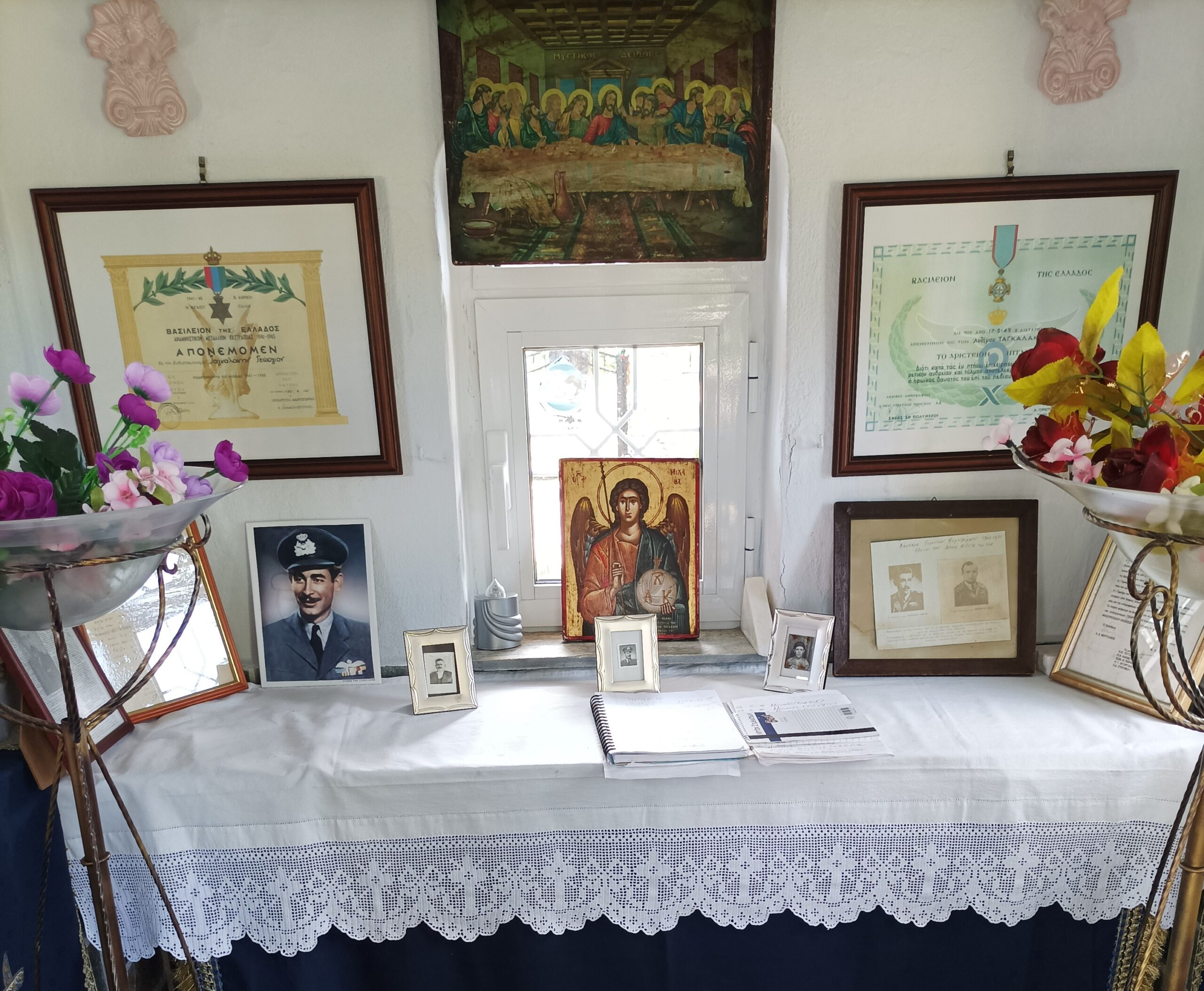 Ξεχωριστή, όπως κάθε χρόνο, ήταν αυτή τη φορά, η παρουσία της μιας αδελφής του Γεωργίου Ταγκαλάκη, Ασπασίας, καθώς η άλλη αδελφή, Γιούλα, έφυγε από τη ζωή πριν ένα χρόνο. Με τη φροντίδα των δύο αδελφών χτίστηκε το εξωκλήσι του Αγ. Γεωργίου καθώς και το μνημείο. Με το χαμόγελο στα χείλη και τη ζωντάνια εφήβου η κ. Ασπασία Ταγκαλάκη παρέθεσε τον καφέ και έδωσε την ψυχή της φροντίζοντας τους παρευρισκόμενους. Με ιδιαίτερη αξία και σημασία η ευχή της, όπως είναι αποτυπωμένη και στο μνημείο.